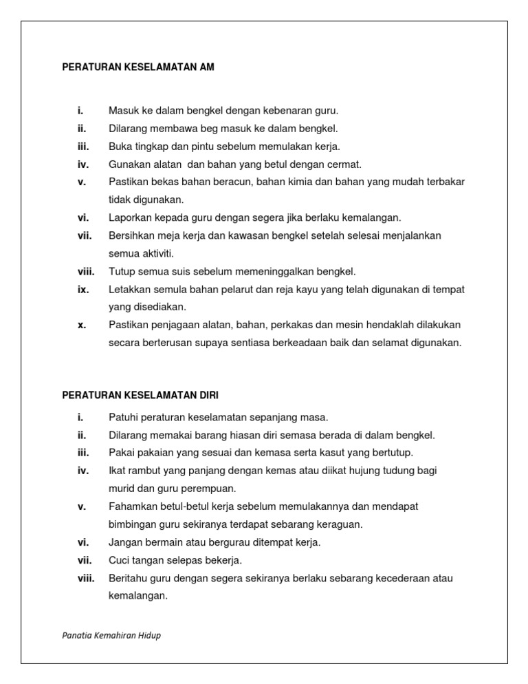 Peraturan Keselamatan Di Bengkel Mariodsxz