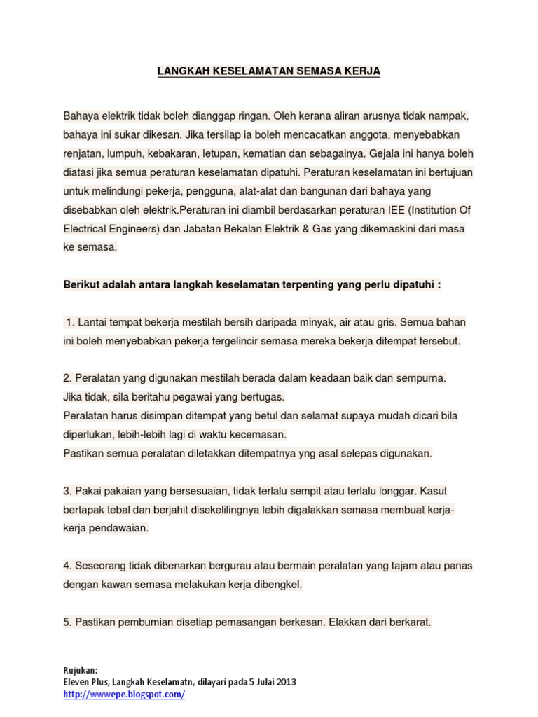 Langkah Keselamatan Semasa Kerja Pdf